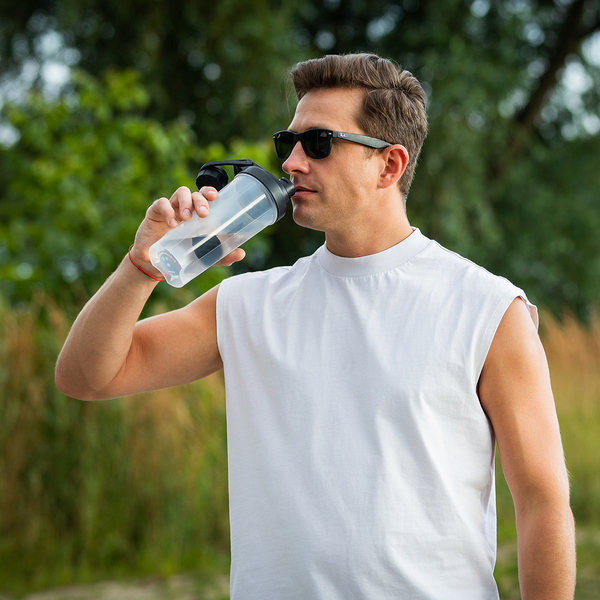 Shaker idealny do białka i innych suplementów, zapewnia łatwe mieszanie dzięki kulce miksującej. Szczelne zamknięcie. Pojemność 700 ml.