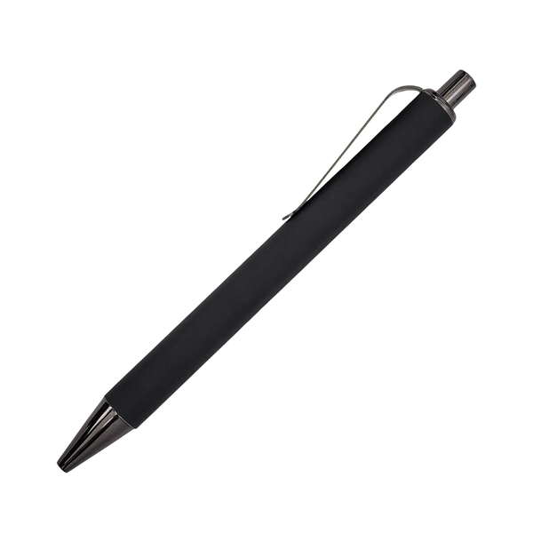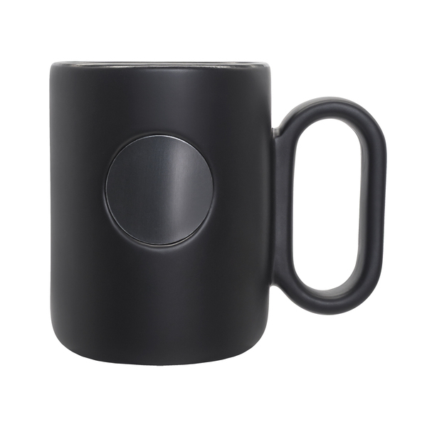 Elegancki zestaw upominkowy zawiera: kubek ceramiczny o pojemności 480 ml, z matowym czarnym wykończeniem i metalowym detalem w kolorze grafitowym (gun metal). Notes 80-kartkowy w kratkę (papier 70 g/m²) w twardej okładce, ozdobiony metalowym akcentem z tasiemką indeksującą. Czarny, aluminiowy długopis z grafitowym klipem, wyposażony w niebieski wkład. Całość zapakowana w eleganckie pudełko prezentowe.